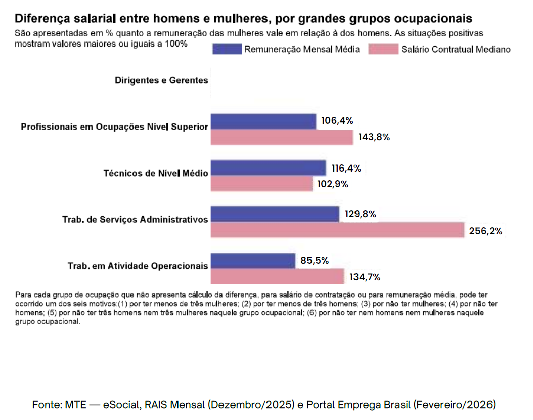 Diferença salarial entre homens e mulheres, por grandes grupos ocupacionais