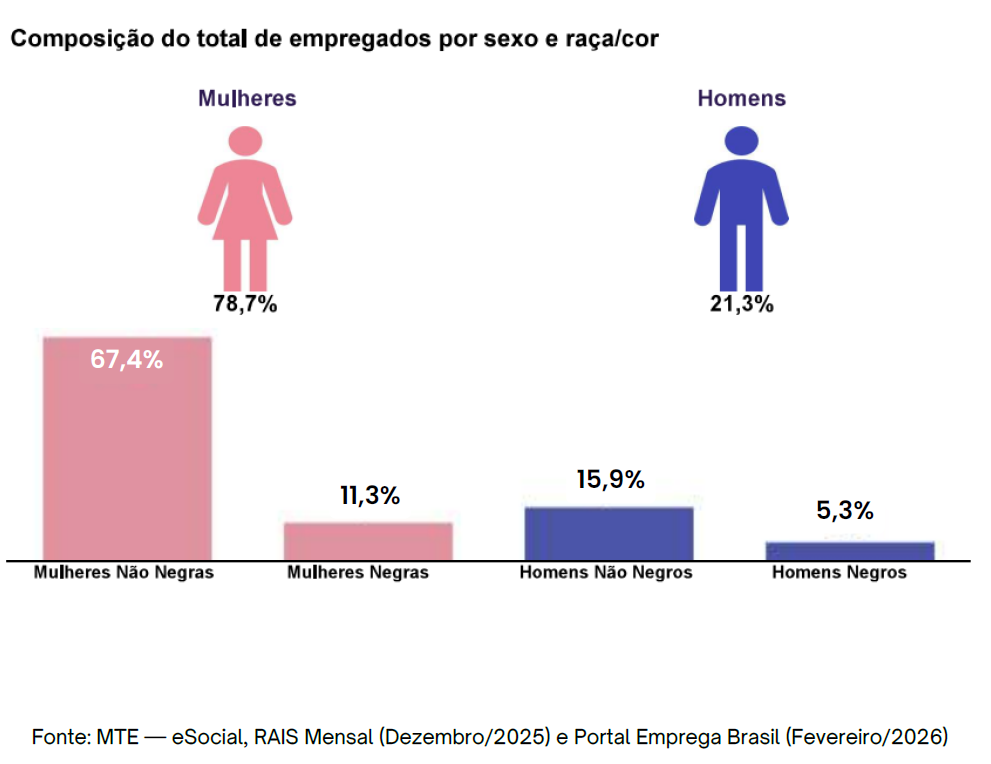 Neste semestre, os dados oficiais elaborados pelo Ministério do Trabalho e Emprego refletem nosso compromisso contínuo com a equidade. Para facilitar a compreensão, detalhamos abaixo as principais informações visuais presentes no documento: